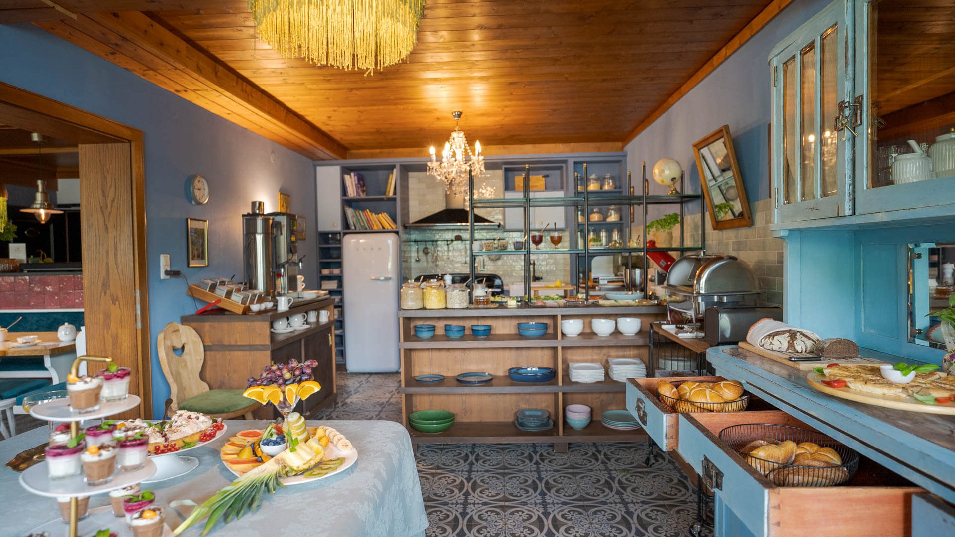 Helles Zimmer im Boutique Hotel Villa Oxa mit Blick auf die Natur und stilvollem Interieur.